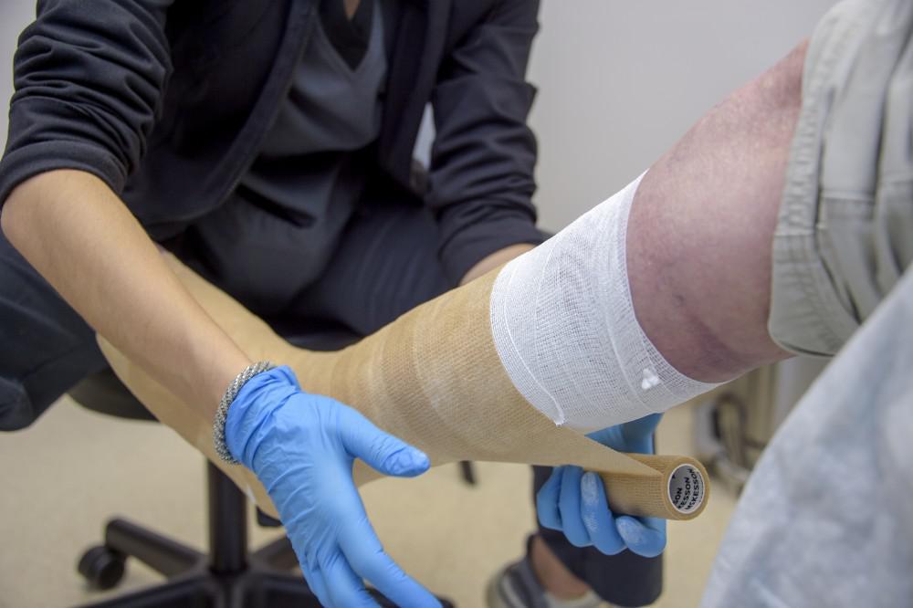تورم و آبی رنگ شدن انگشتان پا پس از برداشتن بانداژ، باید پای خود را تا بیشترین حد ممکن بالا نگه داشته و بلافاصله با پزشک یا پرستار خود تماس گرفت. در برخی کلینیک ها، تیم های تخصصی از جایگزین های جدیدی برای بانداژ های فشاری استفاده می کنند که از جمله آن ها می توان به جوراب های مخصوص یا دیگر وسایل فشاری اشاره کرد. ممکن است این موارد در هر کلینیکی در دسترس نبوده اما آینده درمان زخم ها را در دست خواهند داشت. پزشک متخصص می تواند مفید یا مضر بودن روش های دیگر را برای بیمار بیان کند.