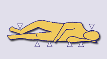 برای مثال نواحی پر خطر در وضعیت خوابیده به پشت، شامل ساکروم، باتکسها، پس سر، آرنجها و پاشنه میباشد