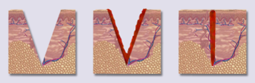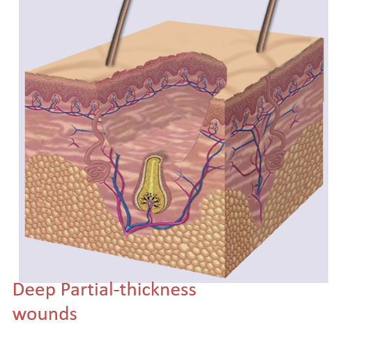 درگیری اپیدرم و تمامی درم و وسعت جراحت به سابکوتیس یا حتی عضله، تاندون و استخوان، مانند: