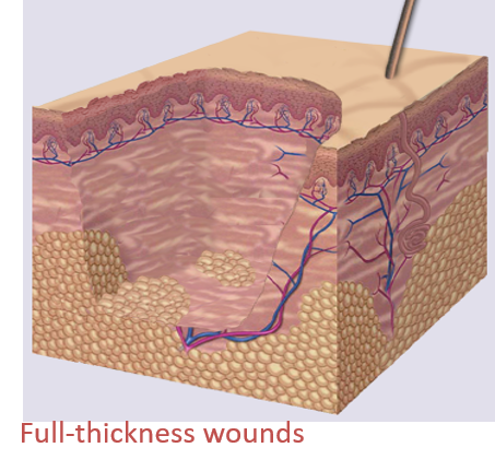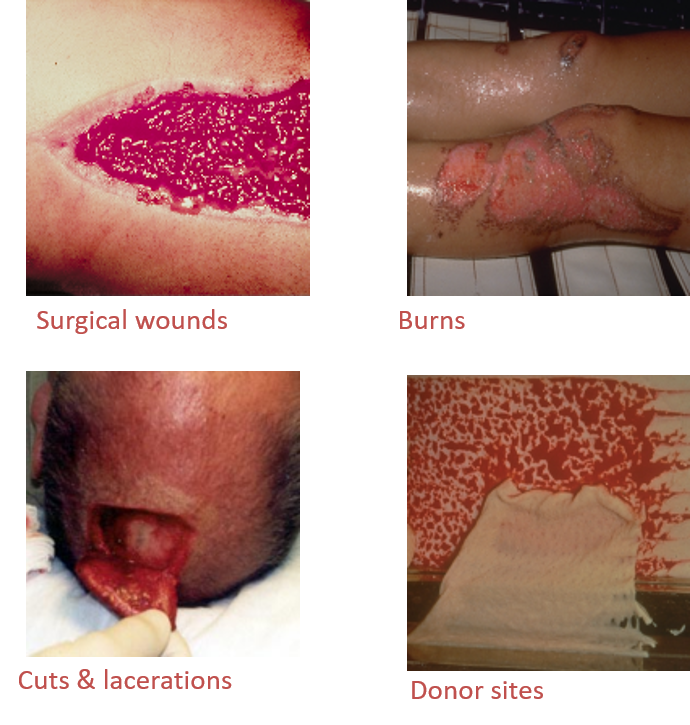 –برای ترمیم زخم هایی که درجاتی از فقدان بافتی دارند و لبه های زخم به راحتی کنار هم قرار نمی گیرند مانند زخم های فشاری، سوختگی ها، زخم های جراحی باز گذاشته شده