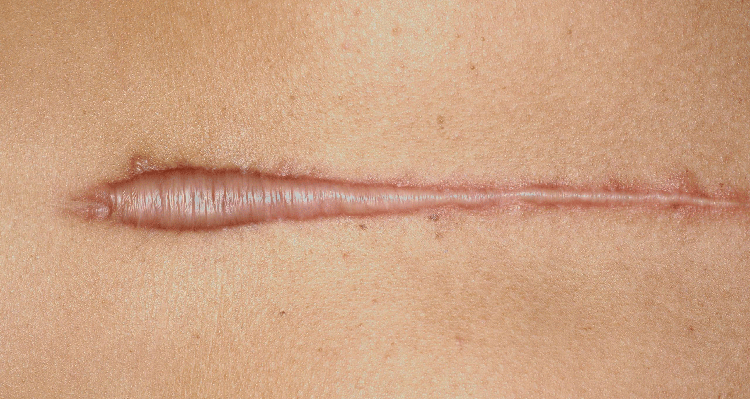 اگر اسکار ناشی از جراحت دارید، به احتمال زیاد یک اسکار کلوئید است. اسکارهای کلوئیدی سفت و صورتی یا قرمز تیره و در نتیجه کلاژن اضافی زیر پوست شما ایجاد می شوند. اسکارهای کلوئیدی نیز فراتر از ناحیه آسیب اولیه گسترش می یابند.
